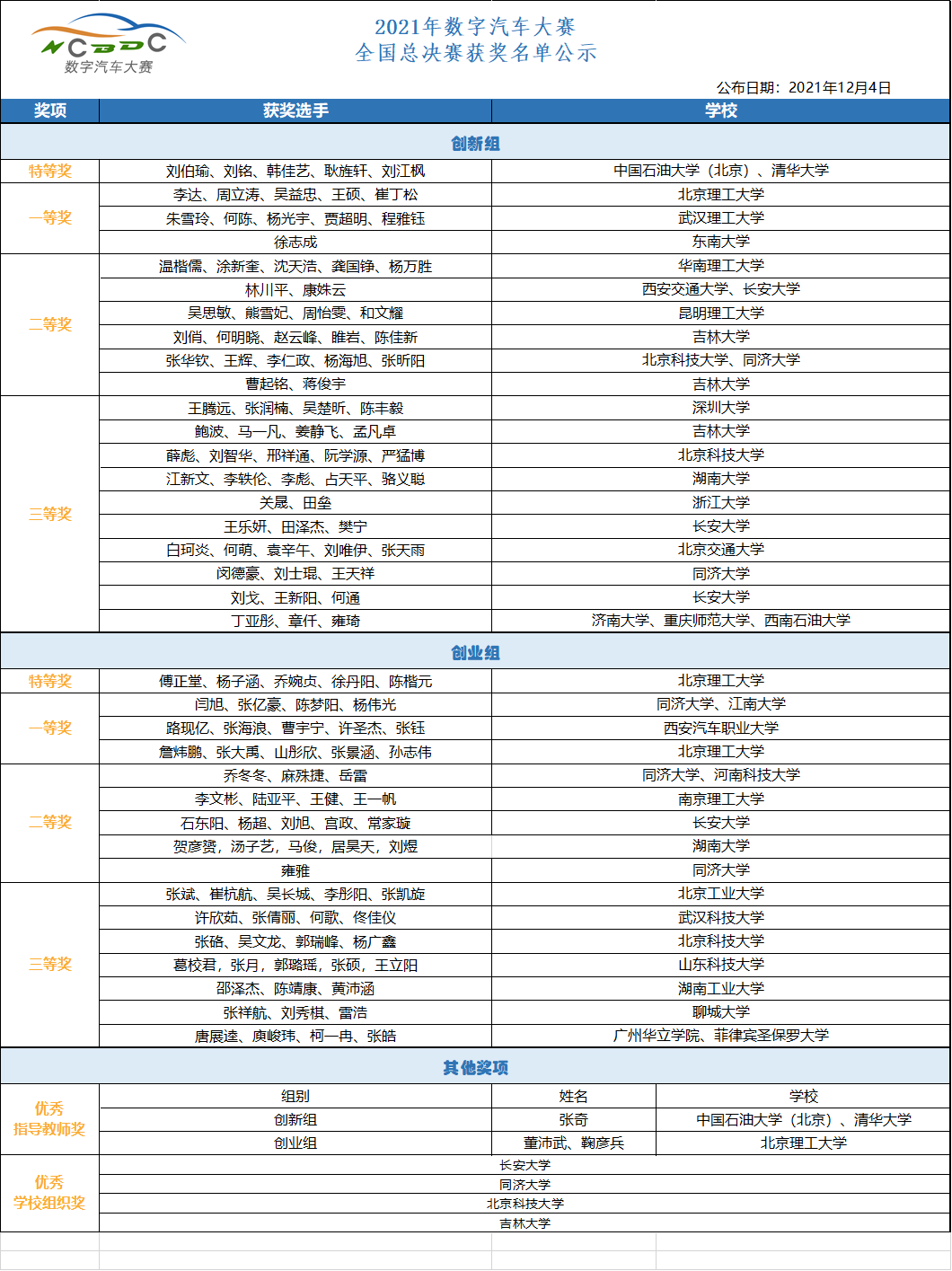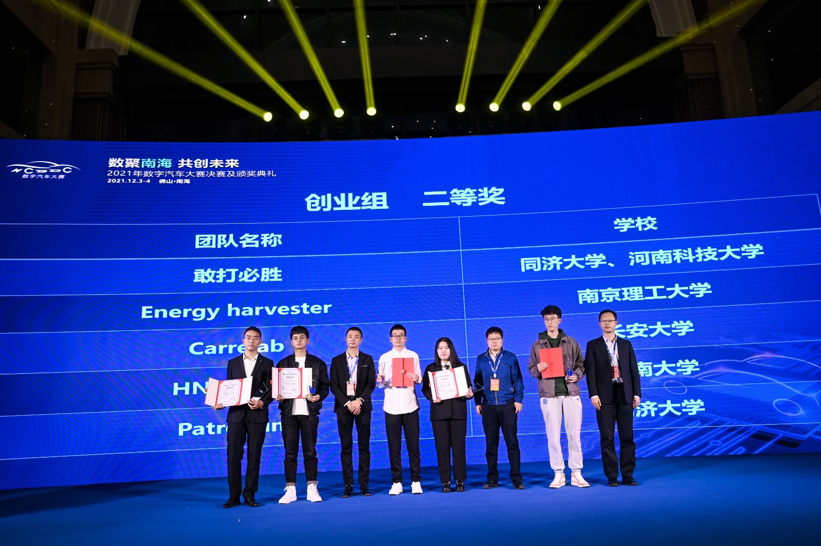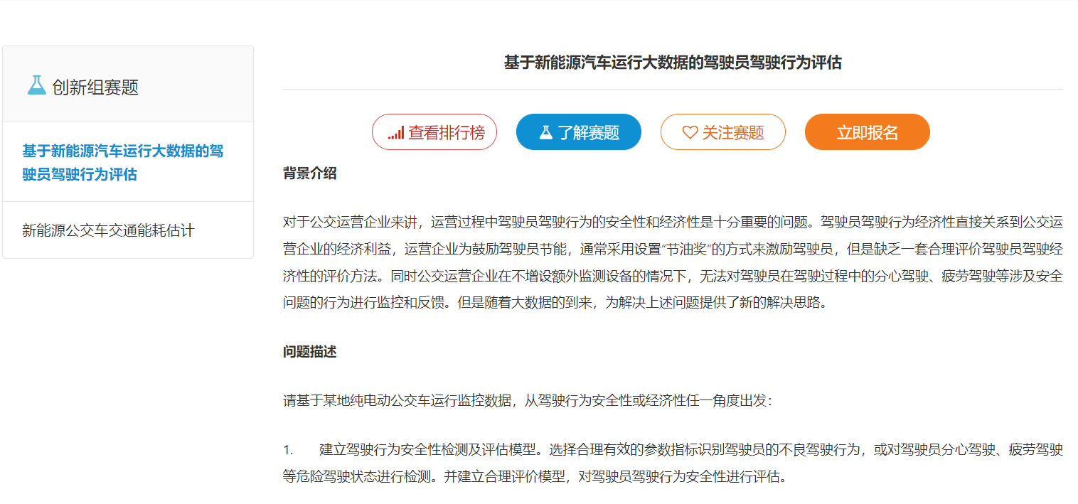 2021年数字汽车大赛是新能源汽车国家大数据联盟连续四年举办的年度国际性高校赛事,大赛依托新能源汽车国家监管平台所接入600万多辆新能源汽车数据,以数据算法创新和数据分析应用为重点,通过挖掘数据价值,探索创新应用,进一步推动行业高端紧缺型人才的选拔,为有创新创业想法的学生提供支持平台。大赛期望与相关各方共同努力,打通学校-科研-企业-产品创新产业链,汇聚数字人才,促进高质发展。 大赛分为创新组及创业组两个组别,各设特等奖、一等奖、二等奖、三等奖等4个等级,并设置优秀奖、优秀指导老师奖及优秀学校组织奖。大赛经过线上初赛和复赛,遴选出36组团队进入决赛。12月3日-4日在广东省佛山市南海区举行大赛决赛及颁奖典礼。